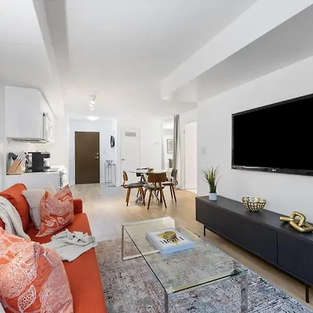 L'appartamento Modern & Stylish Comfort In The Heart Of Toronto ti offre un angolo cottura attrezzato con una lavastoviglie e un forno. La fermata dell'autobus Fleet Street è a 900 metri dall'appartamento.